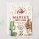 Invitación de Cumpleaños Niña Primera Rodeo Caballo Sombrero Botas