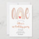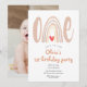Una linda invitación de cumpleaños número 1 con una foto, que incluye tipografía boho, acuarela arcoíris y corazón, y una foto especial en el reverso. Diseñado por Thisisnotme©