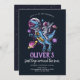 ¡Celebra el primer viaje de tu pequeño explorador alrededor del sol con esta épica invitación de cumpleaños temática espacial! Con un astronauta genial montando un T-Rex a través de la galaxia, esta invitación personalizable es perfecta para el primer cumpleaños de un bebé varón amante de los dinosaurios. Ideal para fiestas espaciales, temas de dinosaurios y diversión cósmica. ¡Personalízalo al instante en Zazzle!
