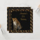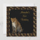 Invitación de cumpleaños, anuncio de celebración de fiesta, leopardo sobre fondo negro y marco de estampado abstracto de animal. Personalizable para cualquier evento.