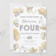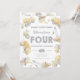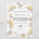Es hora de cavar, descargar y celebrar: ¡tu pequeño cumple cuatro años! Esta invitación de temática de construcción con acuarela presenta camiones, excavadoras y topadoras pintados a mano en tonos suaves y juguetones, lo que la convierte en la elección perfecta para una fiesta de cumpleaños número 4 divertida y festiva.