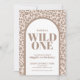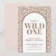 Invitación de cumpleaños número uno para una fiesta de safari en la jungla adorable. Una toma chic y elegante del tema de cumpleaños número uno "Wild ONE". Un tono elegante y estiloso de estampado de leopardo (o guepardo) es perfecto para una niña o un niño porque es neutral en cuanto al género. De hecho, puedes cambiar todos los colores de esta invitación, incluyendo el estampado de animal. Así que ya sea que vayas por un tema de safari o jungla, o una toma elegante de esta tendencia, puedes personalizar esta invitación para hacerla tuya. Con una mezcla de fuentes simples y atrevidas.