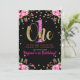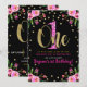 Invitación Cumpleaños número uno Fiesta floral negra con bril