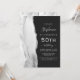 El borde izquierdo de esta elegante invitación de cumpleaños moderna presenta un borde de ágata de acuarela gris y blanca recortado con brillo falso de plata. El texto personalizable combina escritura a mano gris plateada, fuentes copperplate e itálicas sobre un fondo negro pizarra. El reverso presenta un diseño de ágata gris y plateado a juego