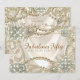 Invitación de cumpleaños perla de la mujer con elegantes hilos de perlas y remolinos de perlas en un fondo de satén marfil. Puede agregar sus datos en el estilo de fuente y redacción de su elección.