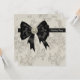 Invitación de cumpleaños elegante de remolino en negro y blanco con lazo de perla en el centro. Agregue sus datos en la parte delantera y trasera simplemente añadiendo los detalles del evento, estilo de fuente, tamaño y color de la fuente, y texto.