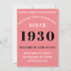 Para los nacidos en 1930 y celebrando su fiesta de cumpleaños tenemos la tarjeta de invitación ideal para el cumpleaños. El fondo rosa, blanco y negro, es sencillo y elegante. Personalizar fácilmente el texto en la parte delantera y trasera de esta tarjeta de invitación de cumpleaños utilizando la plantilla proporcionada. Parte de la gama de normas de configuración de tarjetas, suministros para fiestas y regalos.