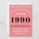 Para aquellos que nacieron en 1990 y celebran su fiesta de cumpleaños tenemos la tarjeta de invitación ideal para el cumpleaños. El fondo rosa, blanco y negro, es sencillo y elegante. Personalizar fácilmente el texto en la parte delantera y trasera de esta tarjeta de invitación de cumpleaños utilizando la plantilla proporcionada. Parte de la gama de normas de configuración de tarjetas, suministros para fiestas y regalos.
