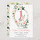Invitación de cumpleaños personalizada boho floral niña uno con destellos de purpurina dorada, moderna elegante - fácil de cambiar la edad, Rosas Rosadas ©