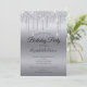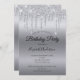 Invitación de cumpleaños personalizada de Dripping Purpurina Silver. Personalice esta invitación con todos los detalles para su fiesta. Puede agregar el año de cumpleaños a la línea de la invitación "Fiesta de cumpleaños".
