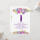 Esta tarjeta de invitación de cumpleaños primero con flores de ciruela morado rosa y azul es perfecta para una fiesta de cumpleaños floral. El diseño cuenta con flores brillantes de acuarela en rosa magenta, morado ciruela y azul aciano, y una hermosa fuente de escritura en negrita ultra violeta. Personalice la parte posterior del wreath floral con el nombre del niño de un año.