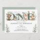 Invitación Cumpleaños Primero Sage Greenery Animales del Bosq