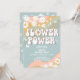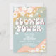 Invitación de Cumpleaños Retro Hippie Poder de la Flor Verde Azul 70s