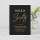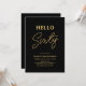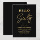 Invite a tus invitados con esta elegante invitación de cumpleaños 60. Este diseño presenta un moderno "Hola Sesenta" en tema de color negro y dorado. Puedes personalizar todo el texto. Los suministros de fiesta coincidentes están disponibles en mi tienda BaraBomDesign.