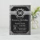 Invitación Cumpleaños Sorpresa 50 Negro y Brillo Plateado