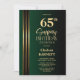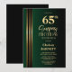 Invitación Cumpleaños Sorpresa 65 Verde Negro con Rayas Dorad