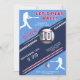 Invitación de cumpleaños con tema de jugador de béisbol de Modern Baseball. Celebre con estilo con este diseño elegante de invitación de cumpleaños con tema de béisbol. Con un esquema de colores azul marino, rojo y blanco, letras en negrita y gráficos realistas de béisbol, este diseño deportivo es perfecto para cualquier fanático del béisbol. La tarjeta muestra siluetas dinámicas de jugadores, una pelota de béisbol 3D y detalles de rayas. Ya sea para una fiesta infantil o para un adulto amante del béisbol, este diseño premium y personalizable es un éxito para cualquier celebración de cumpleaños.