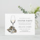 Un conjunto de invitaciones del Oyster Pearl Party para su próximo fiesta de la caza de perlas. Estas invitaciones incluyen un sencillo texto gris de carbón vegetal, junto con una ostra única y un ilustracion de vino blanco centrado en la parte superior. En el reverso de la invitación hay un patrón de melocotón rayado y blanco. Todos los elementos de esta invitación se pueden ajustar mediante la función personalizar. Diviértase agregando sus propios detalles y haciéndolo suyo.