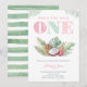 hojas y frutas de acuarela tropical adornan esta invitación de cumpleaños para la pequeña buscadora de tesoros en tu vida de espíritu libre
