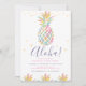Invitación de Cumpleaños Tropical Piña Acuarela Arcoíris. Hermosa y elegante invitación de fiesta luau de cumpleaños tropical con un diseño de piña acuarela arcoíris.