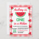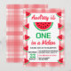 Invitación de cumpleaños brillante y colorida de uno en un melón de sandía para cualquier edad, cambia el texto a lo que quieras cuando ordenes