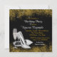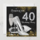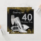 Hermosa invitación de cumpleaños 40 negra y dorada con elegante copa de champán, y zapatos de tacón alto plateados. Puede personalizar fácilmente esta elegante invitación de cumpleaños 40 con plata, negro y dorado para su evento simplemente agregando sus datos en el estilo de fuente y color, y redacción de su elección. También puede cambiar el color de fondo.