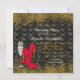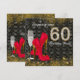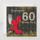Hermosa invitación de cumpleaños número 60 con elegantes zapatos de tacón alto de leopardo rojo y copa de champán en un hermoso fondo de satín negro con brillo. Puedes personalizar fácilmente esta elegante invitación para tu evento simplemente agregando tus detalles en el estilo de fuente y color, y redacción de tu elección. También puedes cambiar el color de fondo.