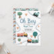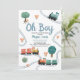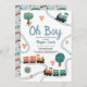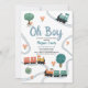 Este diseño de invitación a la ducha para bebés de los chicos "Oh boy", lindo y moderno, presenta un diseño de viajes en tren, con trenes, árboles y vegetación coloridos, con un patrón de viajes en tren a la parte de atrás y puede ser personalizado con los nombres de la madre y otros detalles necesarios para su fiesta. La combinación perfecta de temas de viaje con la ducha de bebé de los niños.