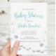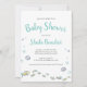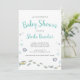 Esta encantadora invitación a la ducha de bebé tiene un bonito tema marino con un texto turquesa y negro. Personalice esta invitación con los detalles de la ducha para bebés.