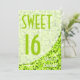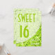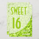 Invitación con un diseño moderno con estrellas diseminadas sobre una estilizada forma curvada de "secuin look" en tonos verde limón con "Sweet 16" "you are guest" escrito en verde y blanco. Se puede usar como fondo para tu propio texto, imágenes e ideas. El texto puede cambiarse fácilmente utilizando la plantilla proporcionada o haciendo clic en el botón "Personalizar" para realizar más modificaciones. Tenga en cuenta que se trata de una imagen de arte digital impresa, que no brilla ni contiene purpurinas o secuencias reales.
