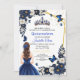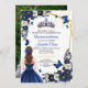 Make your daughter the star of her celebration with this Custom Photo Royal Blue Quinceañera Invitation. This elegant design allows you to showcase a beautiful portrait of the birthday girl, surrounded by majestic navy florals and golden butterflies.