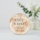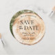 Rustic Wedding Save the Date Photo Wood Grain Invitation—a blend of natural charm and romantic elegance, perfectly tailored to your rustic wedding theme. This unique round card captures the essence of wood grain, emulating the rustic disc slices often seen at beautiful and romantic weddings. *Printed texture wood on paper
