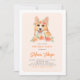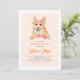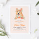 Invitación Cute acuarela Corgi Peach Floral Kids Cumpleaños