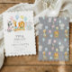 Designed with a soft watercolor style and an elegant scalloped edge, this invitation blends whimsical circus-inspired charm with a clean, refined layout. The gentle color palette and baby animals make it ideal for a “calling all party animals” theme while still feeling polished and modern.