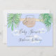 Esta divertida y caprichosa invitación a la ducha de bebé tiene una dulce pereza de bebé colgando de una rama, enmarcada con hojas de selva color agua verde y nubes sobre un fondo azul. El reverso también es azul y está decorado con un follaje tropical, una nube y un espacio para más información. Todo el texto es personalizable. Acuarela original © Michele Davies.