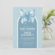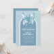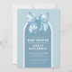Un bonito y elegante hilo azul de la ducha de bebé con un adorable arco de color azul cielo con un detalle de arco que incluye múltiples colores de azul. Mezcla de fuentes blancas con una tipografía serif audaz y un tipo de letra simple y moderno. ¡Celebra que la madre tenga estilo! Disponible también en más esquemas de color. Puedes cambiar los colores de las fuentes a lo que quieras. También puede cambiar el color de fondo en la parte delantera y trasera, así como el arco central y su borde. Acuarela Cute Blue Bow Boy Invitación Baby Shower. Disponible en forma de invitación impresa, o como una invitación digital descargable que puede enviar por correo electrónico o que ha impreso localmente.