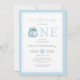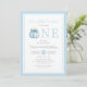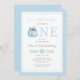 Cute Azul Nuestro Pequeño Chico De Calabaza Invitación De Primer Cumpleaños.