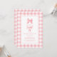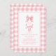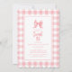 Invitación Cute Bow Pastel Blanco Rosa Gingham Check Cumpleañ