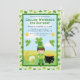 Niño de Cute Brunette Haired con diseño de leprechaun gorra st patrick con olla de oro, shamrock, fortunas de suerte y estrellas