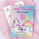 Prepárate para una mágica fiesta de cumpleaños con esta caprichosa invitación con tema de arcoiris unicornio! Con un lindo chibi unicornio pastel con el pelo largo rosa y morado abrazando un corazón, es la manera perfecta de invitar a los amigos a una celebración colorida y brillante.