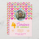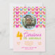 Colorida y juguetona invitación a la fiesta de cuarto cumpleaños, perfecta para una celebración de un chica y la celebración de una niña. El diseño presenta un vibrante patrón de mariposa en la parte superior, combinado con una sección de personalizable debajo para detalles de eventos y fondo rosa rubor. ¡Calma, niñita y diversión! Un marco de foto circular permite subir una imagen del niño de cumpleaños, haciéndolo exclusivamente personal. El texto del personalizable incluye la edad, el nombre y la información del evento del niño, presentada en una mezcla de fuentes divertidas y alegres. Esta invitación es perfecta para añadir un toque personalizado a la planificación de su fiesta. Ideal para cumpleaños de todas las edades, especialmente para niños pequeños.