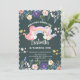Invitación Cute Dinosaur Unicorn arcoíris Floral niños de cum