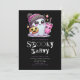 Prepárate para una noche de diversión y espeluznantes festividades con esta moderna invitación a la fiesta de Halloween. El lúgubre tipo de letra "Fiesta fantasmagórico", diseñado para parecerse a las letras de las revistas, añade un toque peculiar y misterioso. El fondo negro crea una sensación clásica de Halloween, mientras que el texto blanco y violeta aparece, haciendo que la invitación sea audaz y llamativa. En la parte superior, un super lindo fantasma roba el foco, agregando un elemento divertido y descarado al diseño. El fantasma está vestido con una abeja rosa y negra adorable, que le da un aspecto moderno y lúdico. Con una taza rosa en una mano y una linterna en la otra, este carácter fantasmal es la mezcla perfecta de espeluznante y dulce. Rodeado de estrellas brillantes, agrega un toque mágico, caprichoso a la invitación, lo que lo hace ideal para una celebración divertida y alegre de Halloween. La parte trasera de la invitación mantiene el elegante tema negro, asegurando un diseño pulido y cohesivo de frente a espalda. Ya sea que esté hospedando a un fiesta de disfraces o una reunión espeluznante con amigos, esta invitación combina el encanto juguetón con la fantasía de Halloween, asegurándose de que sus invitados estén entusiasmados por una noche llena de diversión y misterio!