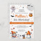 Crea un fiesta espumocrático con esta tierna invitación a la fiesta de cumpleaños de los chicos del fantasma Halloween. Con la combinación perfecta de gráficos que incluyen luna, gorra de brujas, araña y telaraña, fantasmas, calabazas y un caldero con caramelos y estrellas de Halloween! Personaliza las invitaciones de tu fiesta en minutos. Contáctenos para solicitar la coordinación de los suministros y papelería de los fiestas.