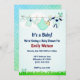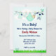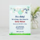 Invitación a una ducha de bebé para un niño o chica, sin distinción de género. Todo en tonos verdes con esta tarjeta de invitación. Una tarjeta divertida con la ropa en la fila y un bebé. Reemplace la información con la suya propia. La parte posterior de esta tarjeta plana tiene rayas verdes diagonales en un diseño retro a la moda.