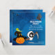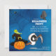 La invitación de Halloween incluye una telaraña con araña, un murciélago lindo, un fantasma de pañales, una linterna en el gorra de una bruja con un lagarto.