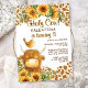 Invitación Cute Highland Cow Print Sunflowers Bird Birday