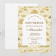 A sweet storybook-style safari design featuring gentle watercolor baby animals including lions, giraffes, and elephants surrounded by soft jungle greenery and a delicate botanical background. The warm neutral palette of cream, honey gold, and soft olive creates a timeless nature-inspired aesthetic, while the elegant arched layout provides a beautiful space for event details.