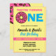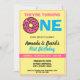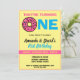 Cute Kawaii Donut Yellow Joint Twin 1st Birthday, un diseño lindo y llamativo hecho para cualquier bebé en su primer cumpleaños. Si buscas invitaciones de cumpleaños hermanos, invitaciones de cumpleaños gemelos o invitaciones de cumpleaños conjuntos, esta es para ti. El diseño presenta una linda donación colorida con información de la fiesta de cumpleaños del personalizable que puedes hacer personalizar para hacer tu propia invitación de cumpleaños.