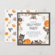 Esta adorable invitación incluye un lindo murciélago, gato, fantasma, gorra de brujas, araña y jack o'lantern. Las palabras "fiesta de Halloween" están escritas en un tipo de letra divertido y festivo. Es la manera perfecta de invitar a los amigos de sus hijos a una fiesta de Halloween que es algo espeluznante y dulce.